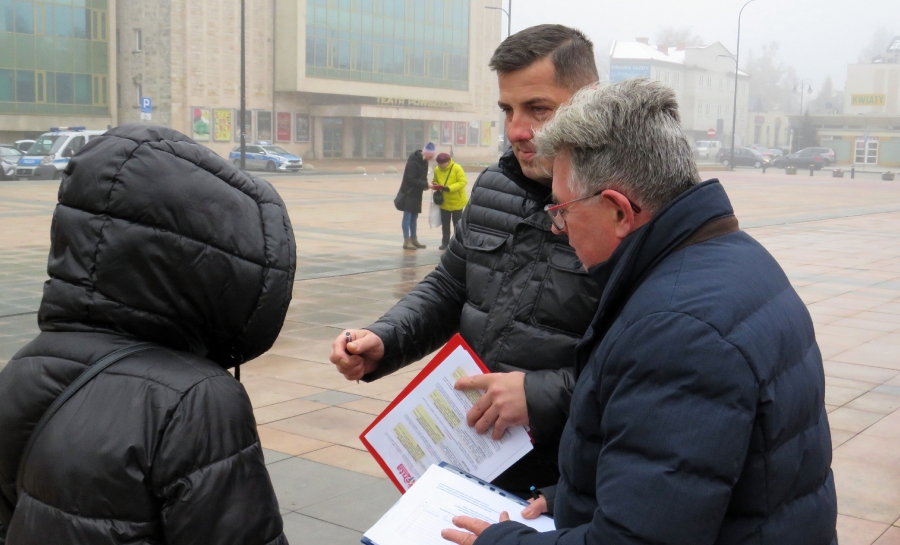 Mglista pogoda  i zimno panujące w sobotę 26 listopada  nie przeszkodziły radomianom w podpisywaniu  w  sobotnie  południe list wspierających  inicjatywę Klubu Parlamentarnego LEWICY oraz Ogólnopolskiego Porozumienia Związków Zawodowych, które  złożone w Sejmie RP mają doprowadzić  do przyjęcia ustawy pod nazwą ,,Renta wdowia”.